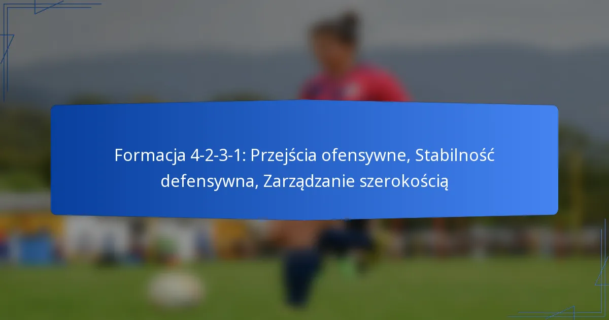 Formacja 4-2-3-1 poprawia przejścia ofensywne, zapewniając zrównoważoną strukturę, która wspiera szybkie kontrataki, jednocześnie utrzymując stabilność defensywną. Taki układ pozwala na płynny ruch i skuteczne pozycjonowanie, umożliwiając drużynom wykorzystanie przestrzeni pozostawionej przez przeciwników podczas przejść.