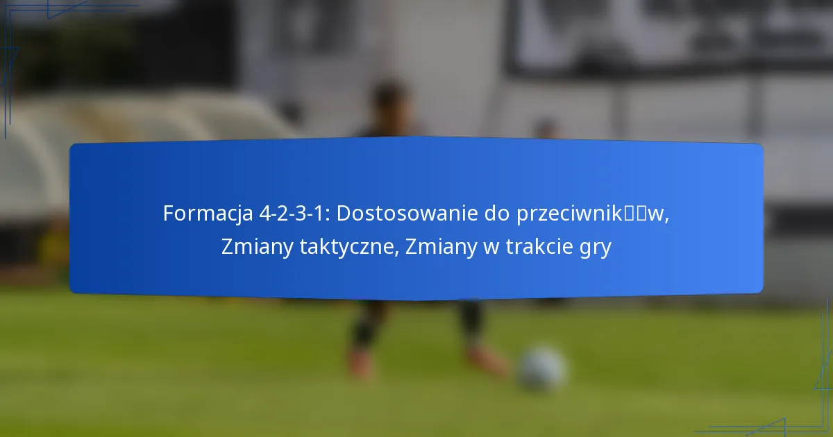 Zmiany taktyczne w trakcie meczu są kluczowe dla utrzymania elastyczności taktycznej w formacji 4-2-3-1. Trenerzy i zawodnicy muszą być gotowi do wprowadzenia zmian w czasie rzeczywistym, w zależności od przebiegu meczu i taktyki przeciwnika.